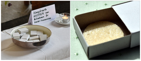 Pastor Werner Portugall, of the Limburg diocese also took to Facebook to notify parishioners he would "distribute and hand out instructions for a home Easter communion" together with "consecrated hosts in the required number. These," he notified, "can be picked up between 11 am and 1 pm. ... Communion takes place at home, not in the church. The hosts were inserted into the corporal with disinfected tweezers — we mean to enable a safe form of communion and yet to accommodate those for whom this spiritual 'food' is of great importance."